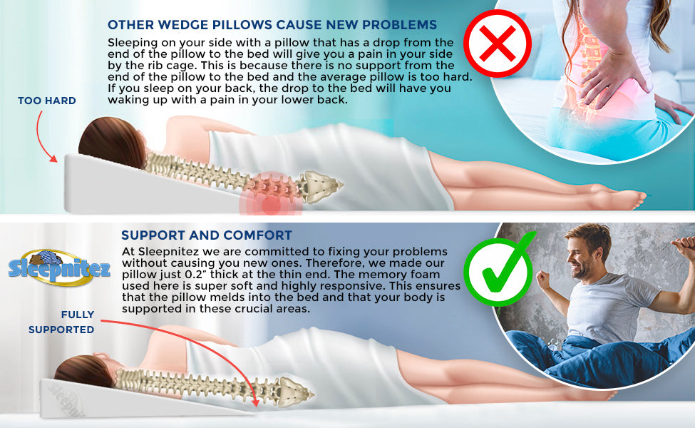 The 0.2" thin soft seamless edge blends smoothly with your bed, providing support without additional pressure or discomfort, making it easier to maintain the elevated position necessary for reflux relief.